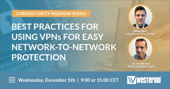 Je bent van harte welkom om deel te nemen aan de 1ste webinar uit de “Cybersecurity fundamentals” serie. Aanmelden is nodig en kan via deze link https://www.westermo.com/news-and-events/webinars/cybersecurity-fundamentals-vpn-best-practices