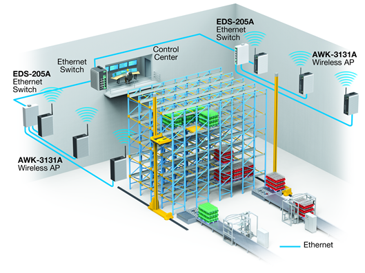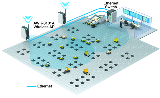 Automated Storage en Retrieval Systems (AS/RS) worden geplaatst in distributiecentra voor het behalen van de hoogst mogelijke efficiëntie, dit bijvoorbeeld voor opslag van levensmiddelen en dranken. Operators in het control center hebben informatie nodig over de locatie, status van de shuttlesystemen om ongelukken te voorkomen en voor een optimale productiviteit. Een betrouwbaar Wi-Fi netwerk is nodig voor deze verbinding van shuttle naar het control center van het AS/RS in real-time.