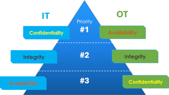 Voor de OT-beveiliging is naast informatiebeveiliging, de beschikbaarheid en veiligheid van de (real-time) operationele systemen en de productieprocessen bewaken de hoogste prioriteit. Dit vraagt om een andere benadering van beveiligingsoplossingen.