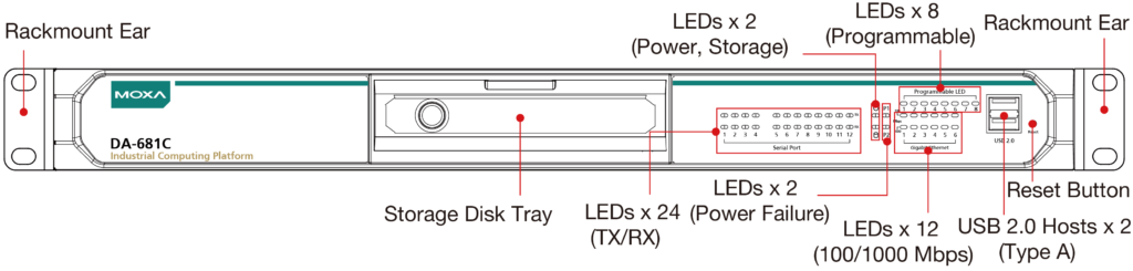 De Moxa DA-681C computer is gebouwd rond een Intel® Celeron® of Intel® Core™ i3 CPU en wordt geleverd met dubbele beeldschermpoorten (2 x HDMI), 5 USB-poorten, 6 Gigabit LAN-poorten, twee 3-in-1 RS-232 /422/485 seriële poorten, 10 RS-485 seriële poorten, 6 digitale invoerpoorten en 2 digitale uitvoerpoorten. Daarnaast zijn een 2,5-inch HDD/SSD-slot en een mSATA-slot inbegrepen om opslaguitbreiding mogelijk te maken voor industriële toepassingen die grote opslagruimte nodig hebben voor edge data-acquisitie.