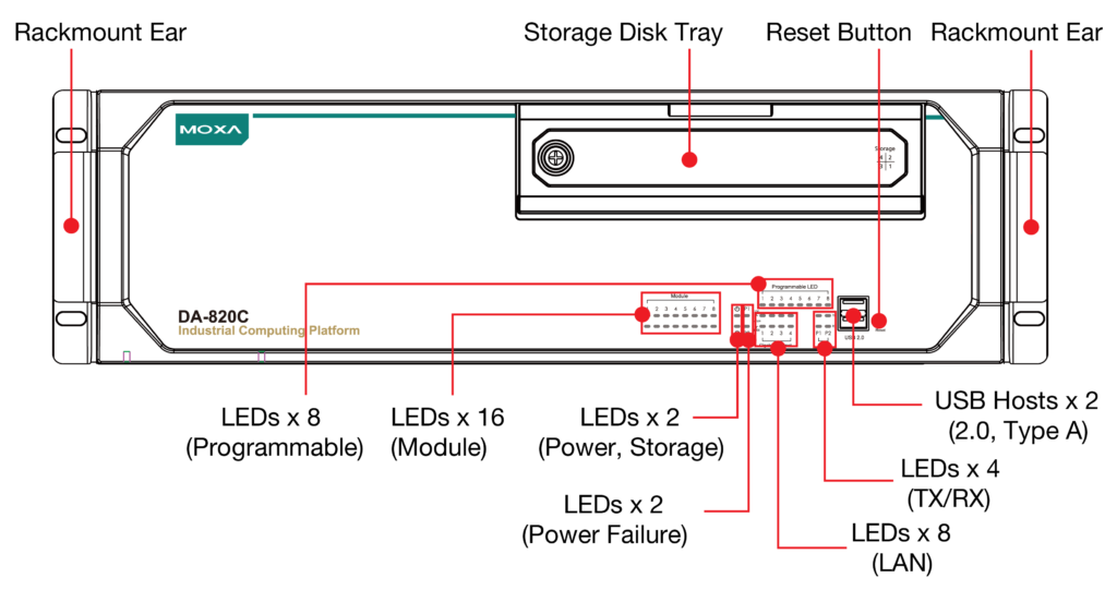 De Moxa DA-820C-serie is een krachtige 3U industriële computer voor rackmontage, gebouwd rond een 7e generatie Intel® Core™ i3/i5/i7 of Intel® Xeon®-processor. Deze wordt geleverd met 3 displaypoorten (HDMI x 2, VGA x 1), 6 USB-poorten, 4 gigabit LAN-poorten, twee 3-in-1 RS-232/422/485 seriële poorten, 6 DI-poorten en 2 DO-poorten. De Moxa DA-820C is ook uitgerust met 4 hot-swappable 2,5-inch HDD/SSD-sloten die Intel® RST RAID 0/1/5/10-functionaliteit en PTP/IRIG-B-tijdsynchronisatie ondersteunen.